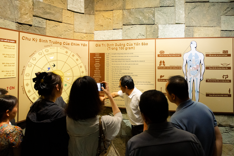 Điểm nhấn đặc biệt của Làng Yến Mai Sinh chính là các khu vực dành riêng để du khách khám phá quy trình nuôi yến. Tại đây, bạn sẽ được các hướng dẫn viên tận tình giới thiệu về môi trường sống của chim yến, cách xây dựng nhà yến phù hợp, và quy trình thu hoạch tổ yến hoàn toàn tự nhiên. Những câu chuyện thú vị về nghề nuôi yến – từ công sức lao động miệt mài đến niềm tự hào về sản vật quý giá – sẽ giúp bạn hiểu thêm về giá trị văn hóa và kinh tế của nghề truyền thống này.